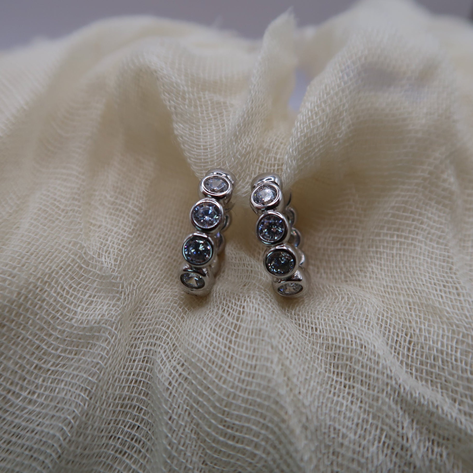Elegante hoop-øredobber i 925 sterling sølv med antikk finish, formet som detaljerte blomster innlagt med funklende cubic zirconia. Det vintage-inspirerte designet med utskjæringer og teksturerte detaljer skaper et romantisk og tidløst smykke. Perfekt for den som elsker vintage-estetikk og unike design.